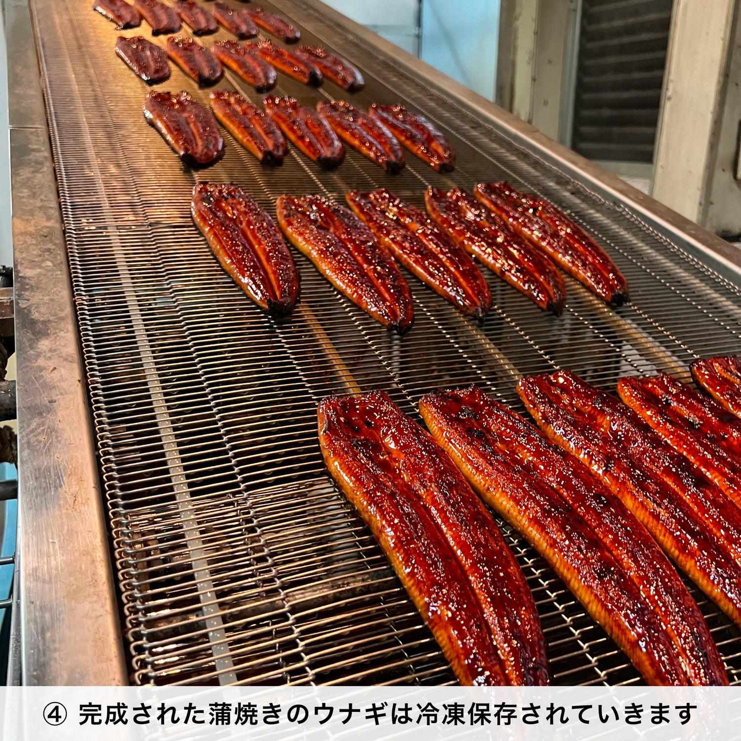 焼き上げられた蒲焼のうなぎは特殊な特殊な凍結機で急速凍結して美味しさを閉じ込めます。