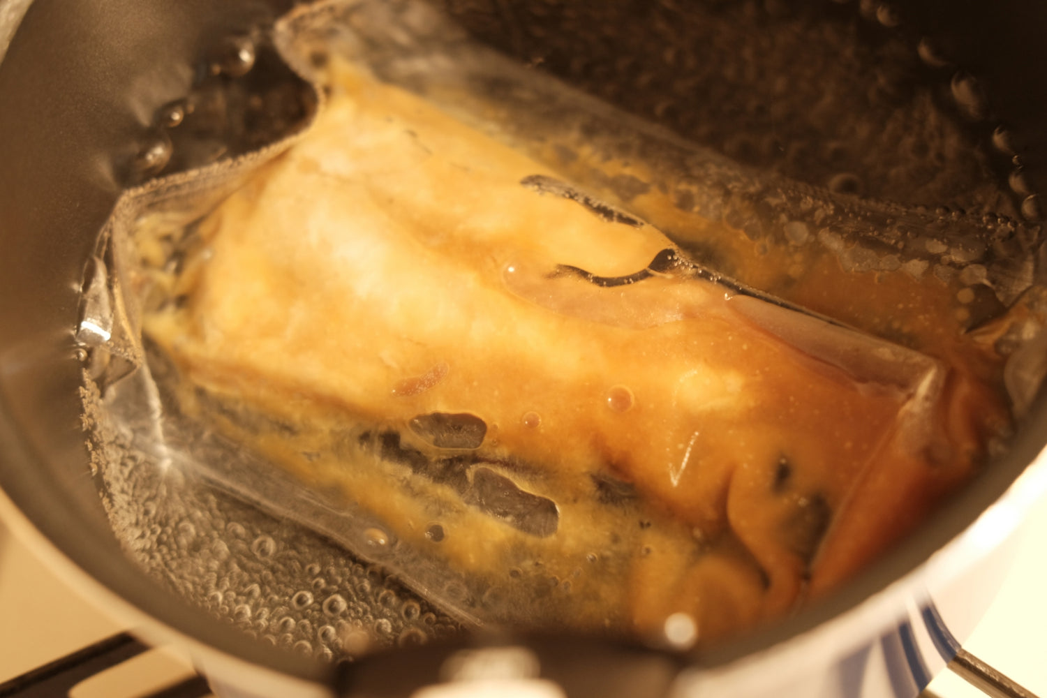 冷凍されたパックのうなぎを取り出し食べたい分だけ湯せんします。
